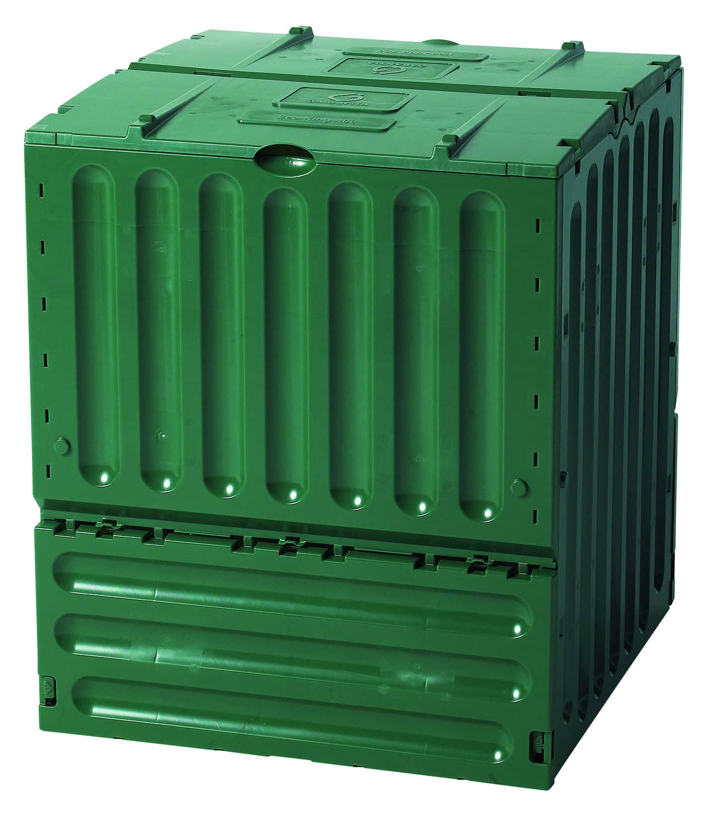 Compostador Eco King disponible en 400 y 600 litros, fabricado en plástico reciclado de alta resistencia, diseñado para convertir residuos orgánicos domésticos en compost natural de manera eficiente.