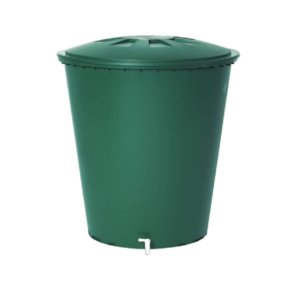 Depósito de agua de lluvia redondo con una capacidad para 210, 310 y 510 litros fabricado en polipropileno de color verde.